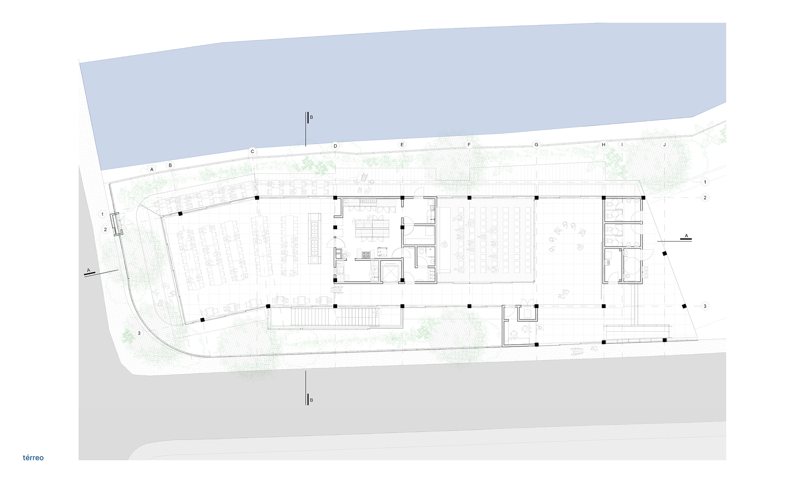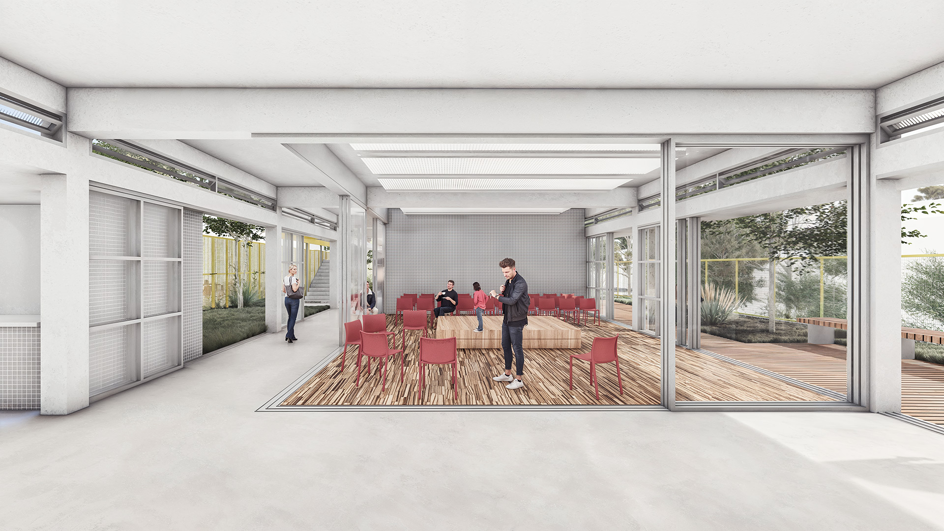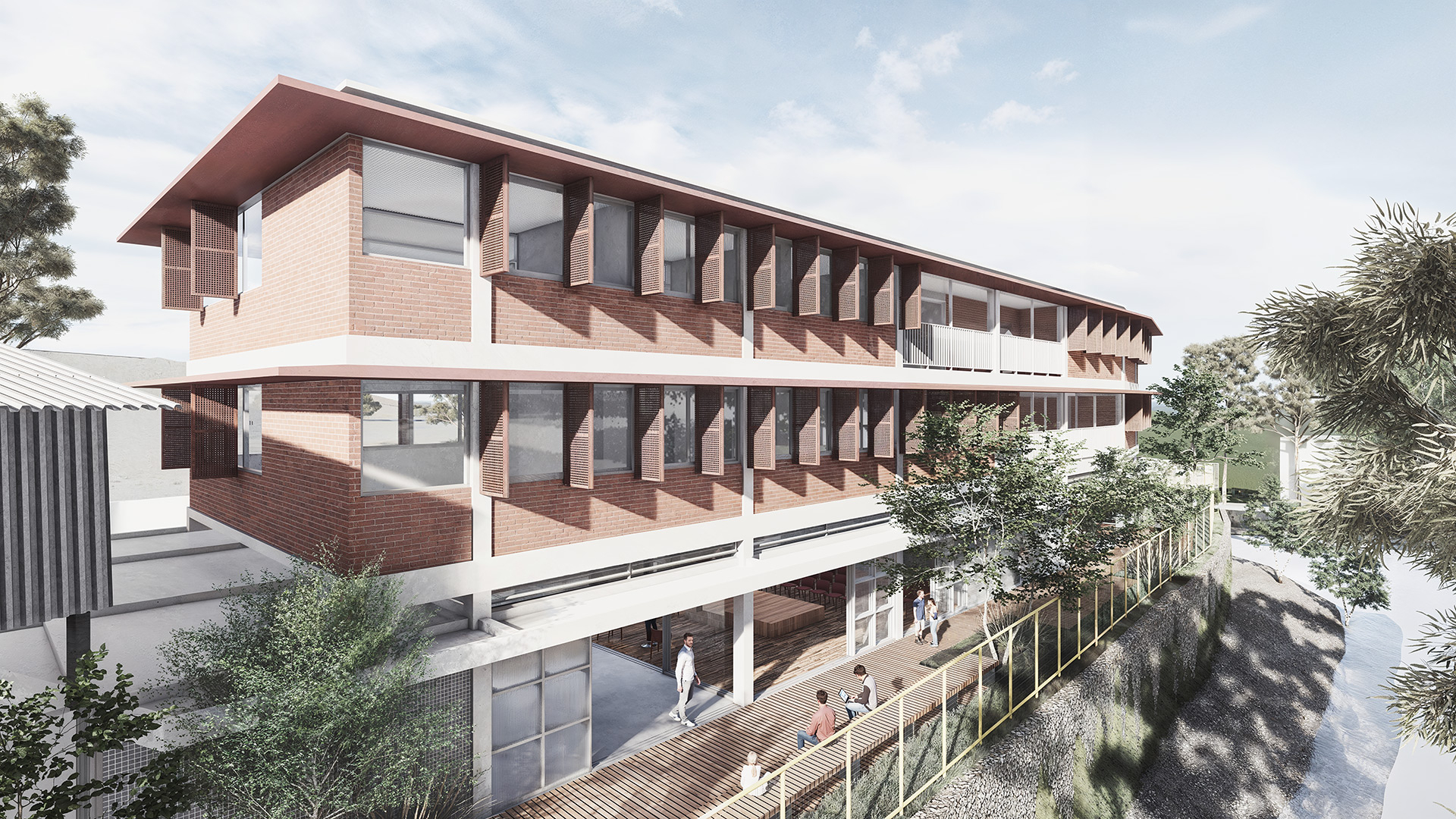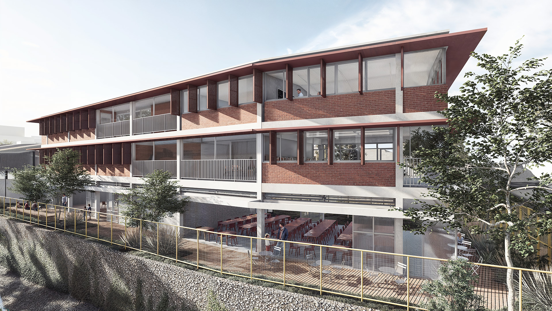 Situado em uma área urbana densa, o edifício também visa promover a recuperação ecológica do entorno. A recuperação das margens do córrego Morro Grande, com o plantio de espécies nativas, é um dos principais eixos da intervenção, buscando restaurar a biodiversidade local e melhorar a qualidade do ar e o conforto térmico na região. A proposta fomenta a mobilização comunitária, criando um espaço que favorece a educação e o fortalecimento dos laços sociais, ao mesmo tempo em que promove a conscientização ambiental.
