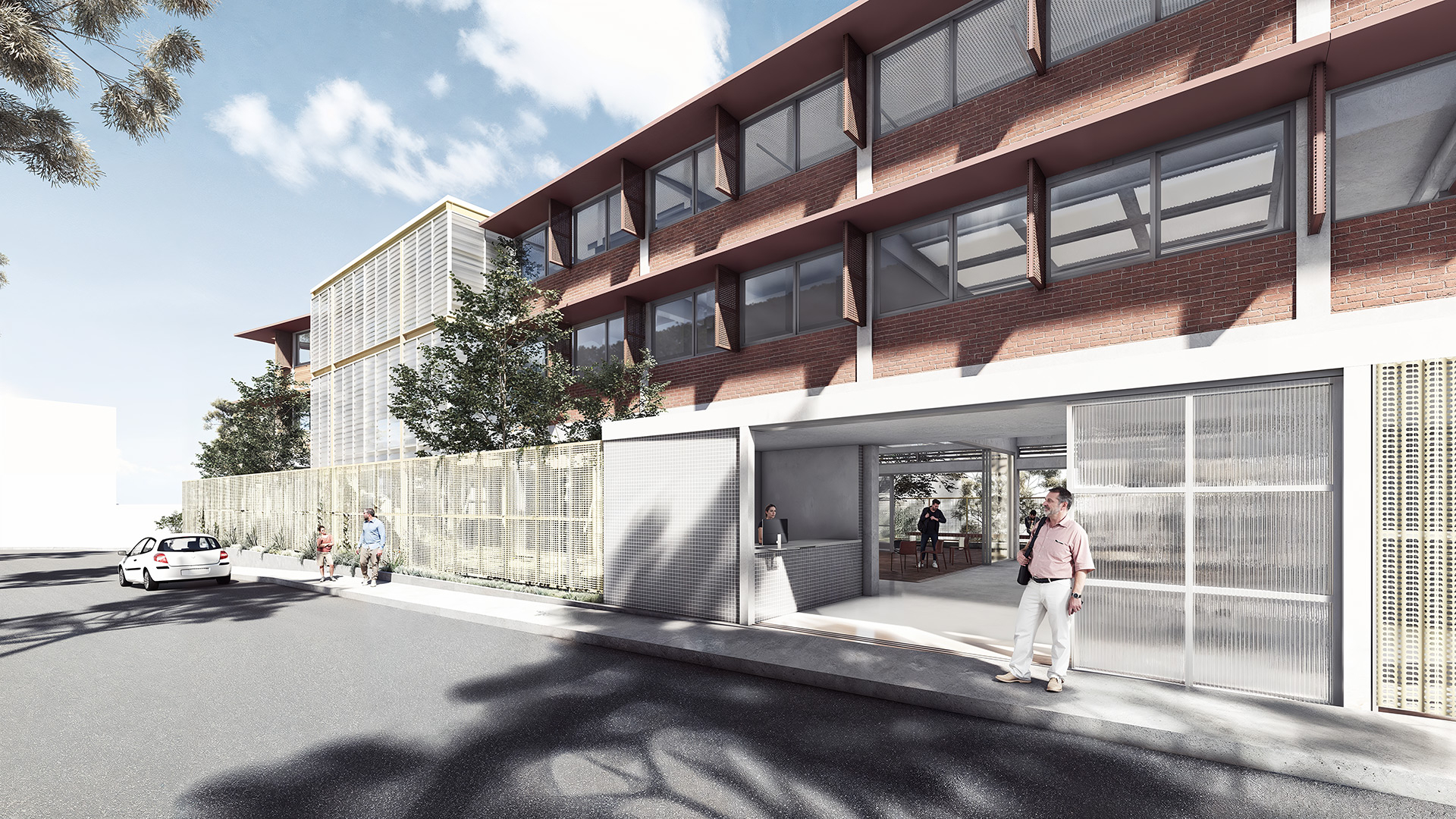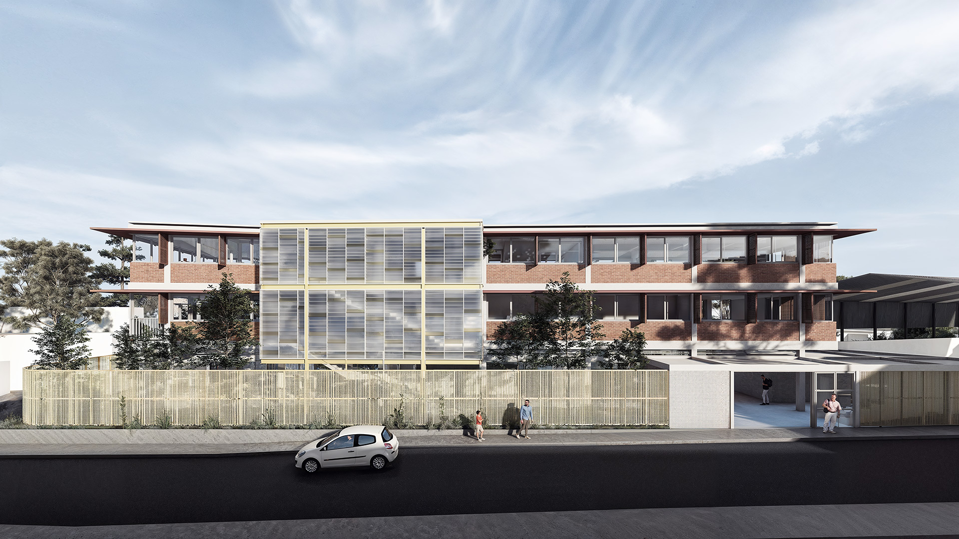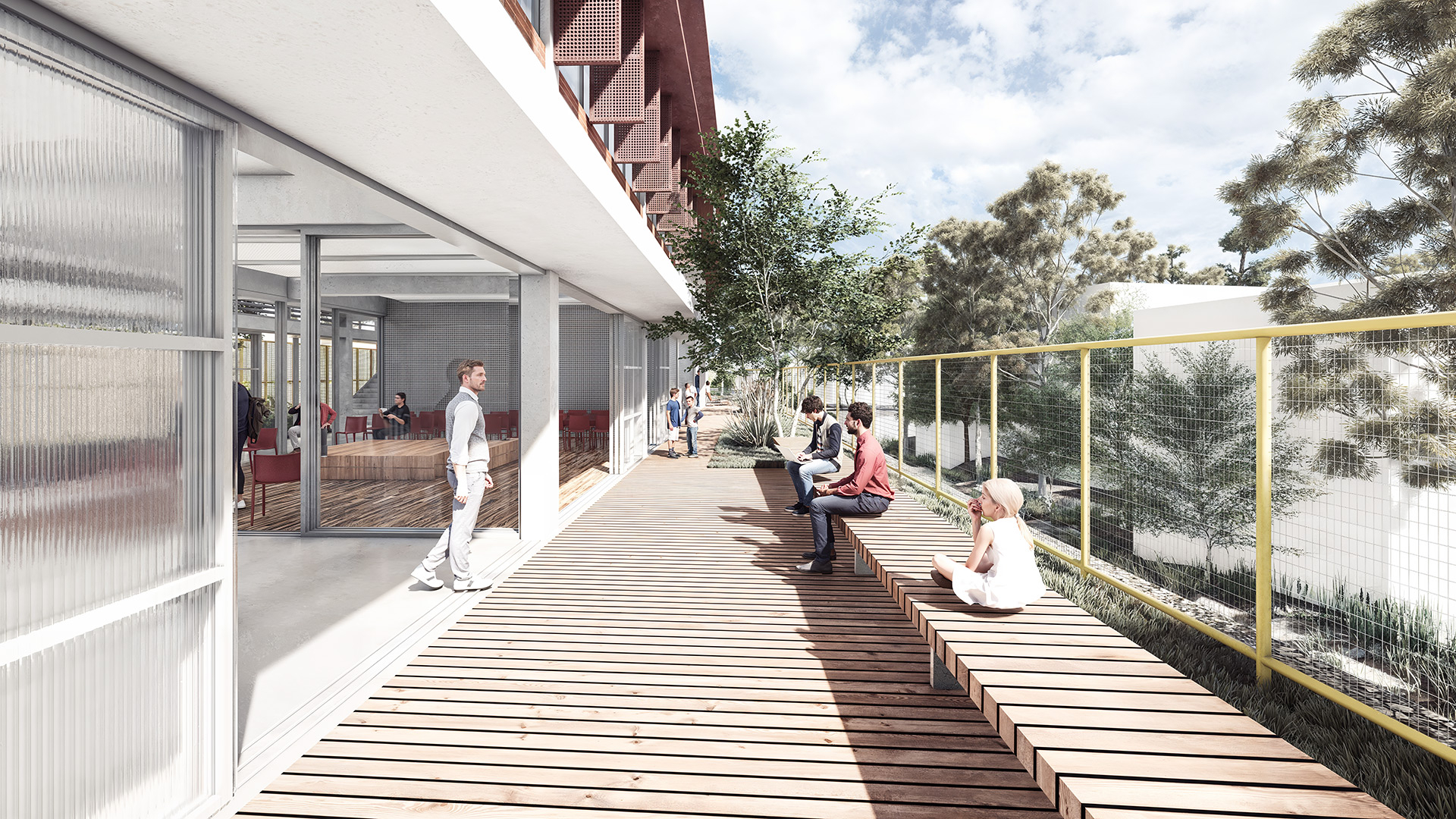 O projeto do edifício foi concebido como um equipamento educacional para a formação profissionalizante de jovens da periferia de São Paulo, integrando salas de aula, biblioteca, auditório e refeitório. A proposta adota estratégias passivas para garantir a eficiência energética e o conforto ambiental, com soluções como brises verticais e horizontais que protegem as fachadas da incidência solar direta, atenuam o ruído urbano e permitem a ventilação mesmo em dias chuvosos. As varandas funcionam como espaços de descompressão, promovendo a interação social e conectando os usuários ao exterior.