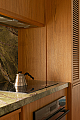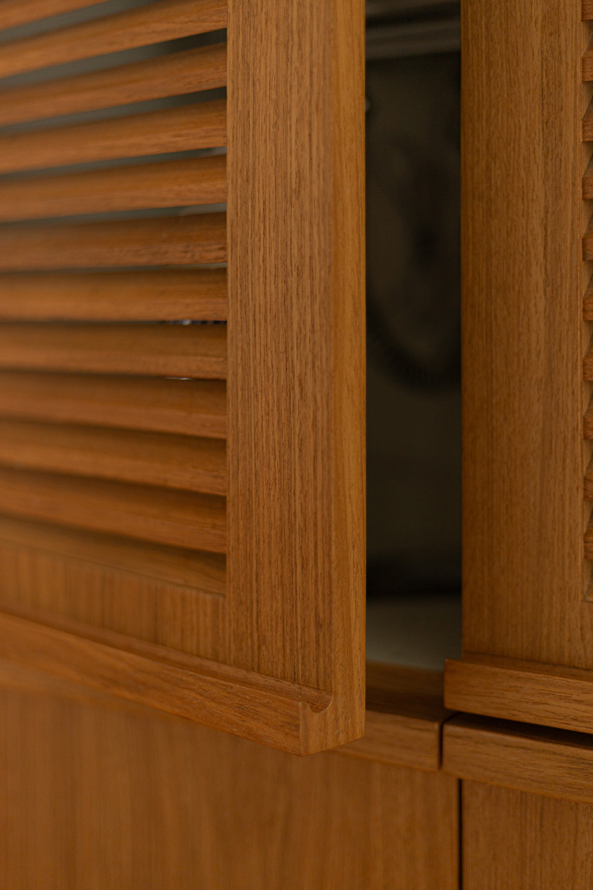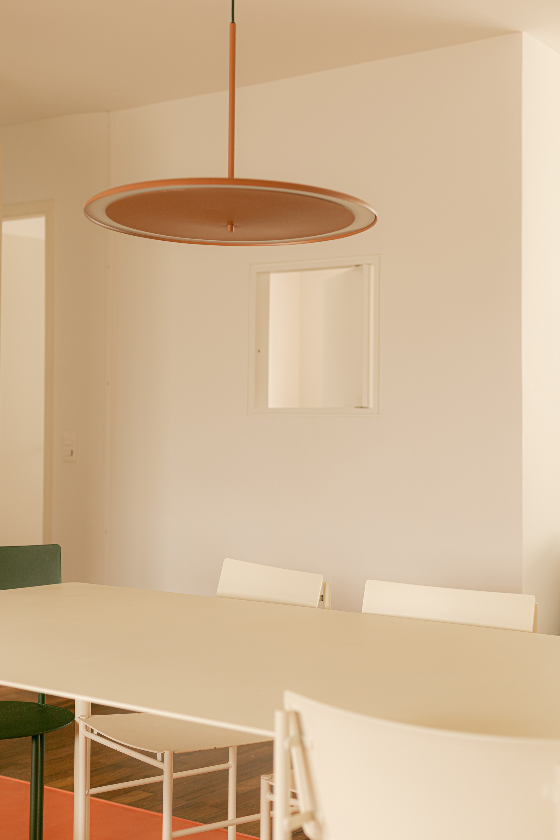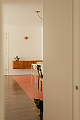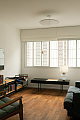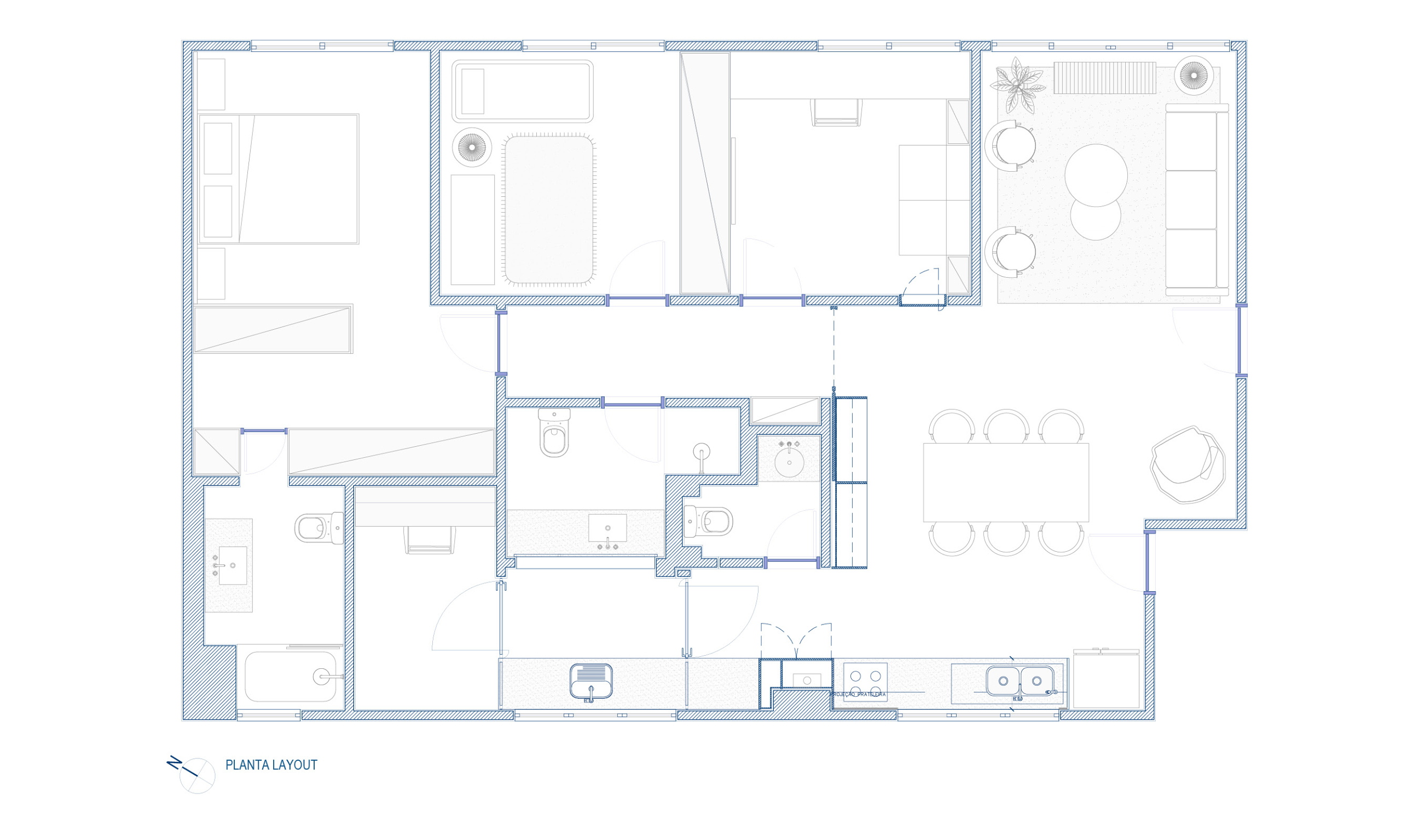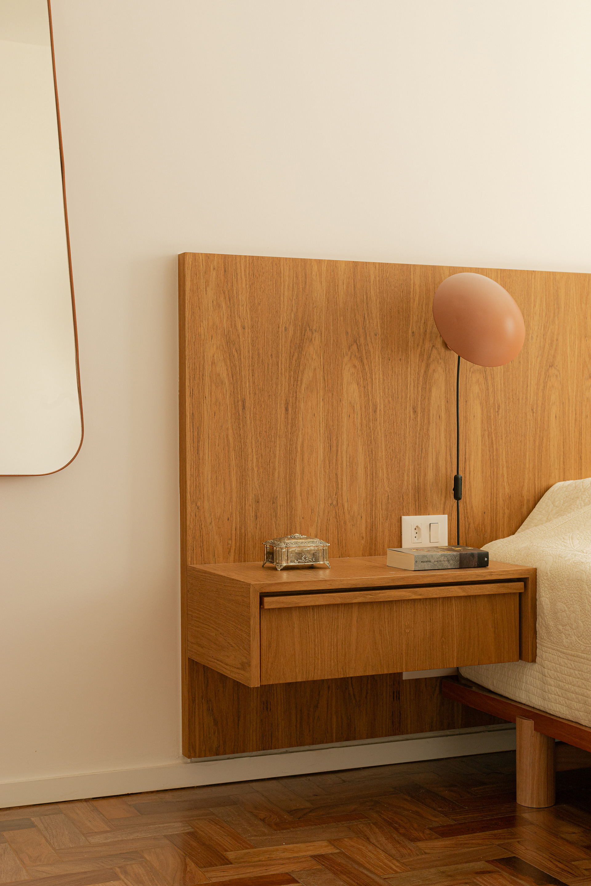 O piso de madeira original das áreas secas foi mantido e apenas restaurado, reforçando o caráter econômico e sustentável da intervenção. O resultado é um apartamento mais integrado, luminoso e funcional — adaptado às exigências da vida contemporânea, sem recorrer a soluções radicais ou dispendiosas.