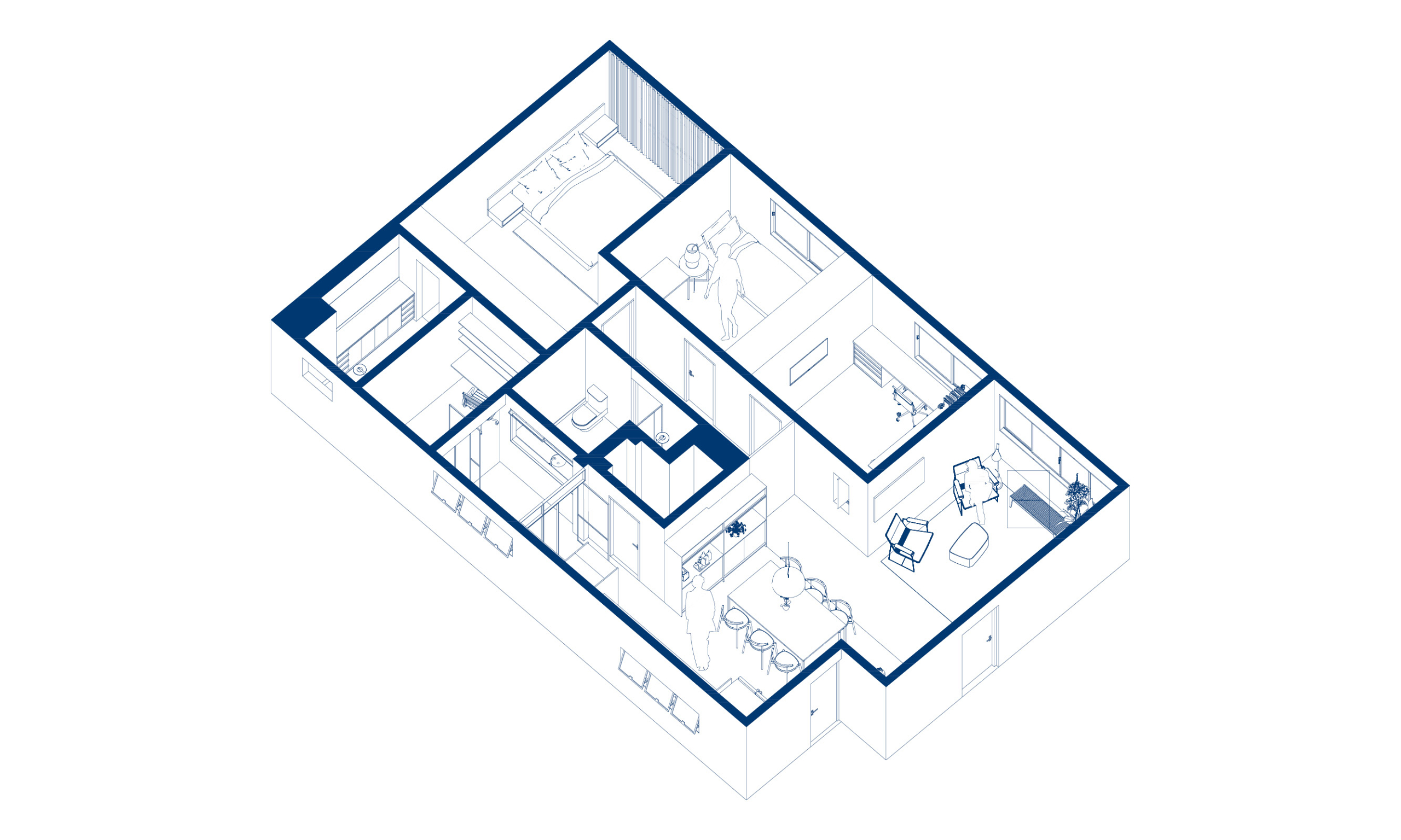 Este apartamento de três dormitórios, localizado na Vila Mariana, passou por uma reforma que teve como principal objetivo revelar qualidades espaciais encobertas por uma planta excessivamente compartimentada. Apesar de voltado para os recuos laterais do edifício — sem grandes vistas a explorar — o imóvel se destacava por receber ventilação cruzada e luz natural em duas fachadas. A intervenção partiu justamente da valorização desse potencial.