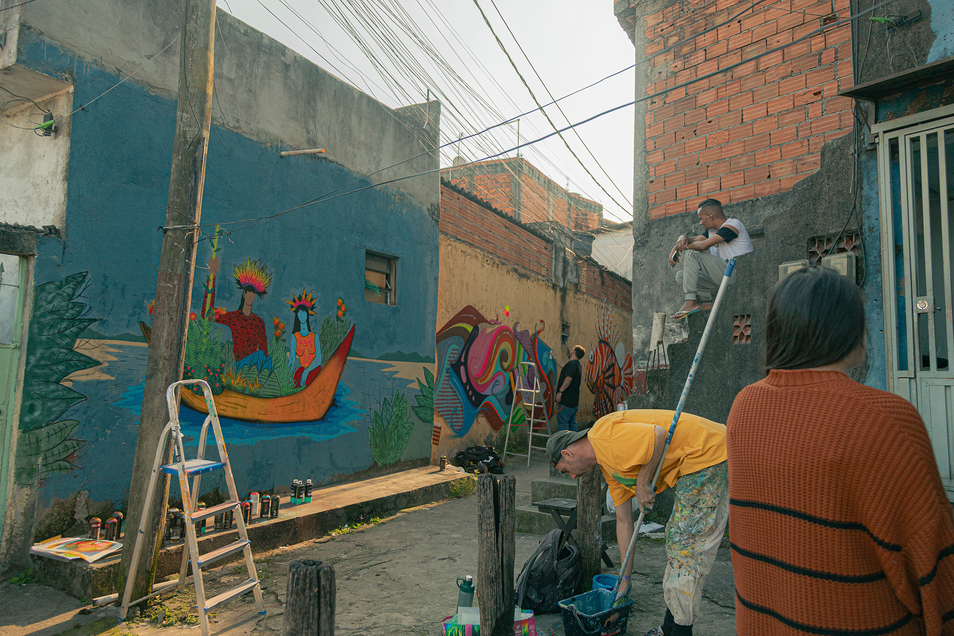 mobilização de grafiteiros: instituto a7ma, alma da rua e agenda cultura arte: grafiteiros coordenados por enivo e bettina ravioli