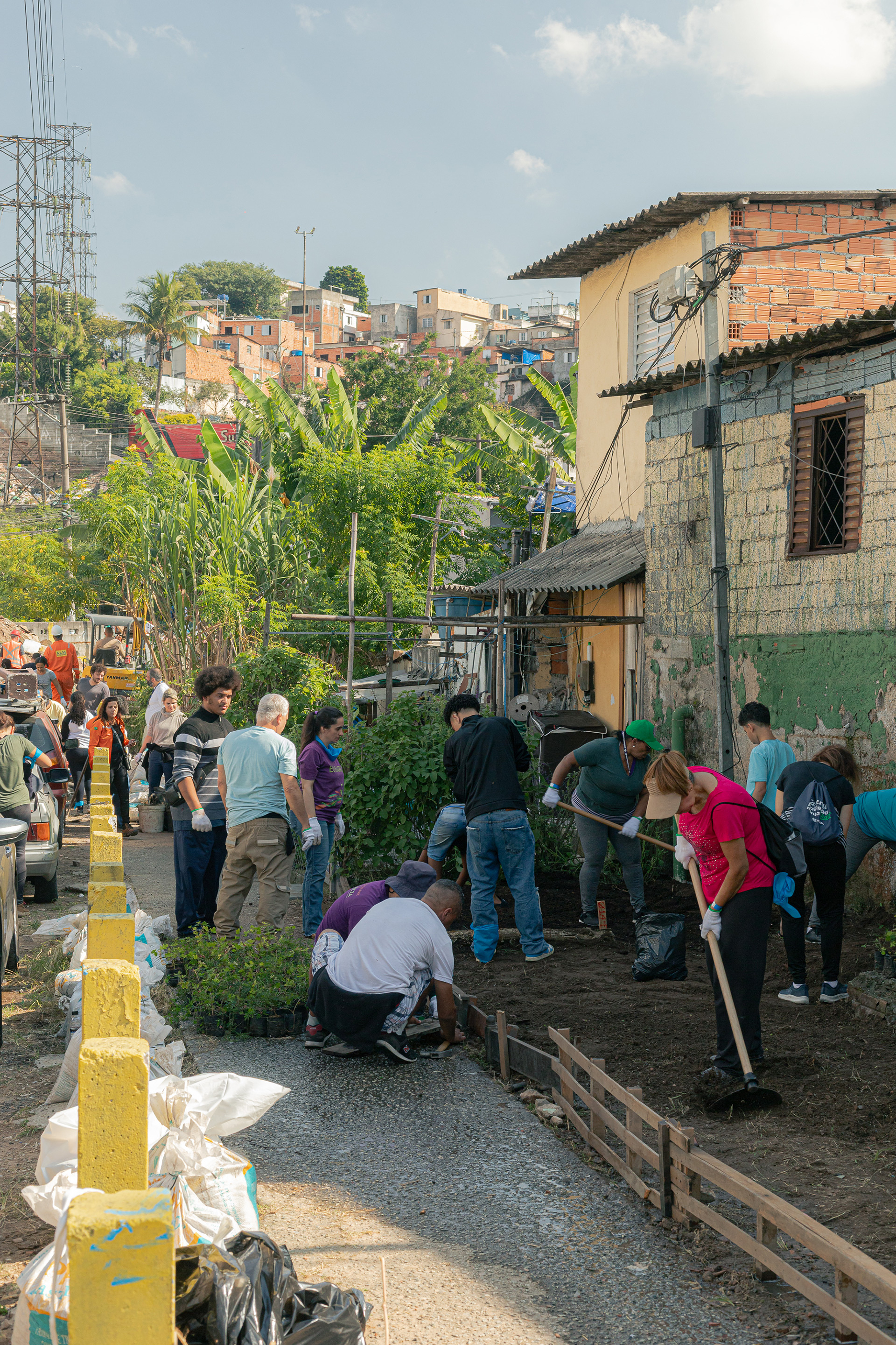 A proposta foi implantada em um grande mutirão nos dias 31 de maio e 1 de junho de 2025, reunindo moradores, organizações comunitárias, secretarias da prefeitura, parceiros e voluntários em um esforço coletivo para regenerar este trecho do córrego, com atividades de limpeza, grafite, plantio e montagem das plataformas. Entendemos esta primeira experiência como um projeto-piloto para transformar os córregos da cidade a partir da cooperação comunitária, da sustentabilidade urbana e da regeneração ambiental.