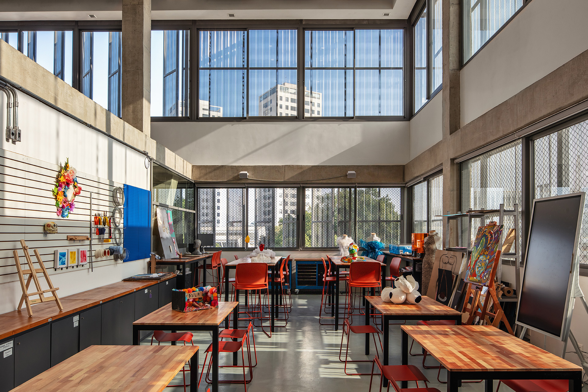 No segundo bloco, que ocupa o 4º e 5º pavimentos, estão alocadas as atividades complementares, como auditório, biblioteca, laboratórios e espaço de artes. Por fim, na cobertura do edifício, está localizada a quadra poliesportiva.