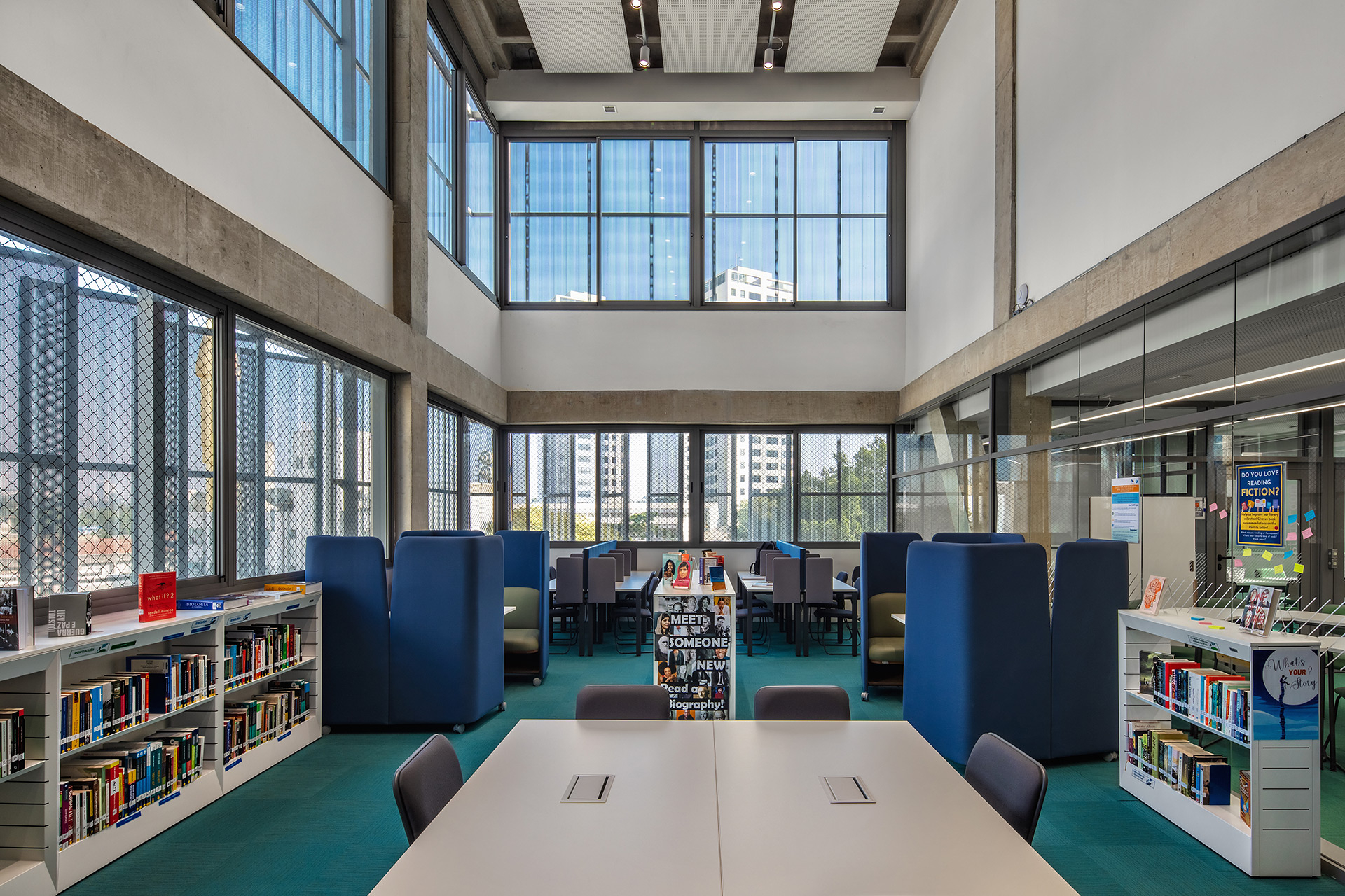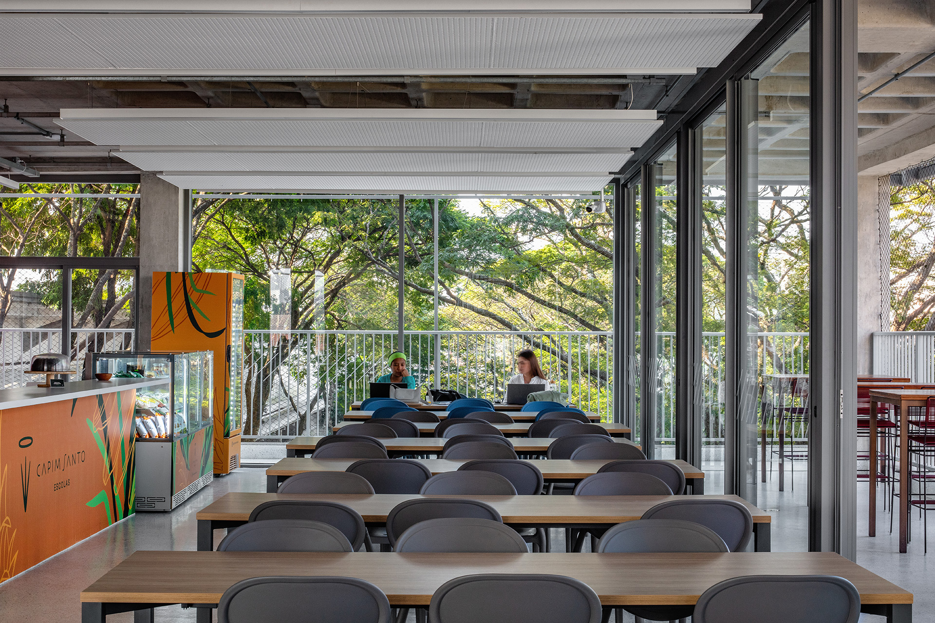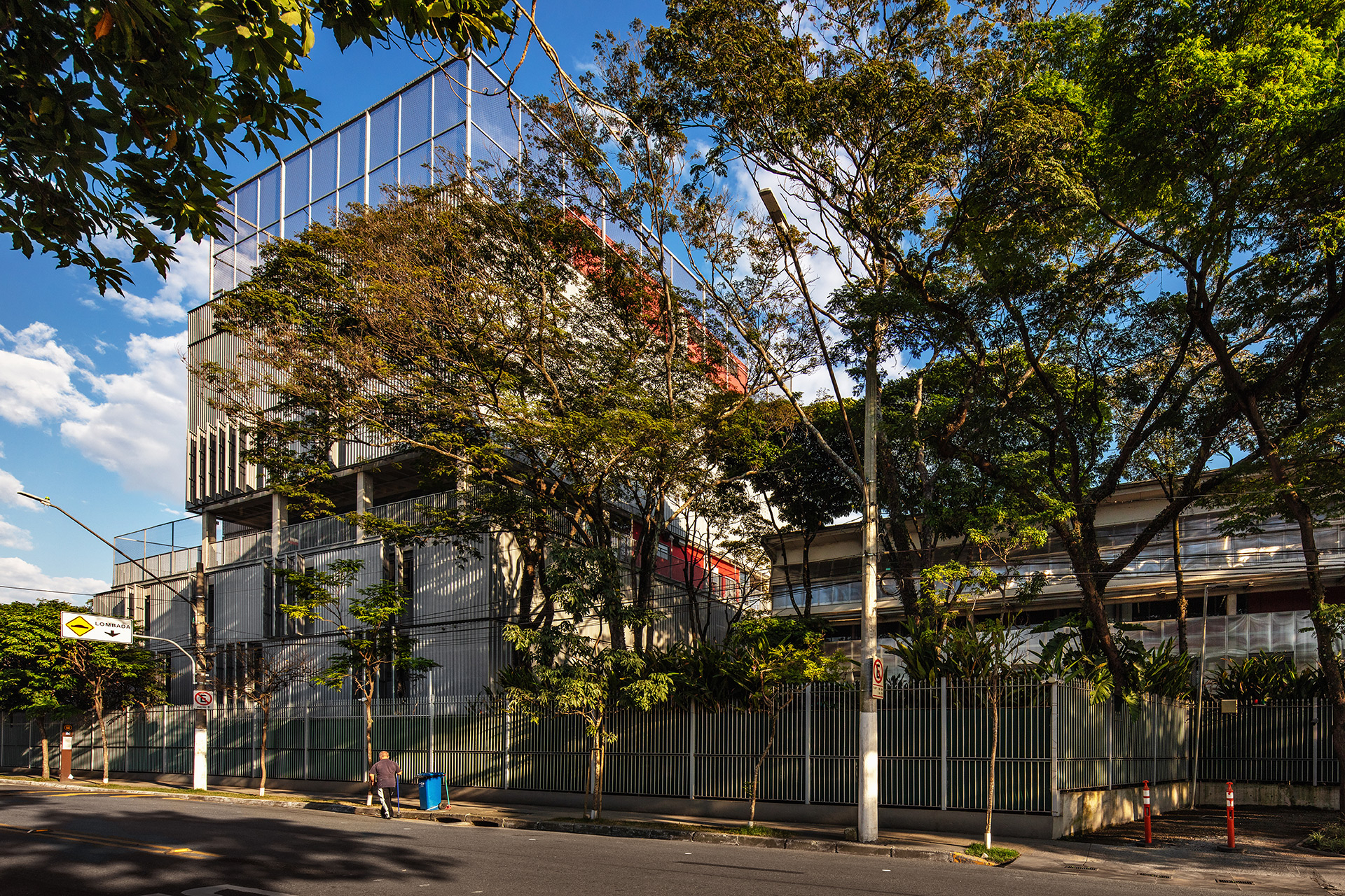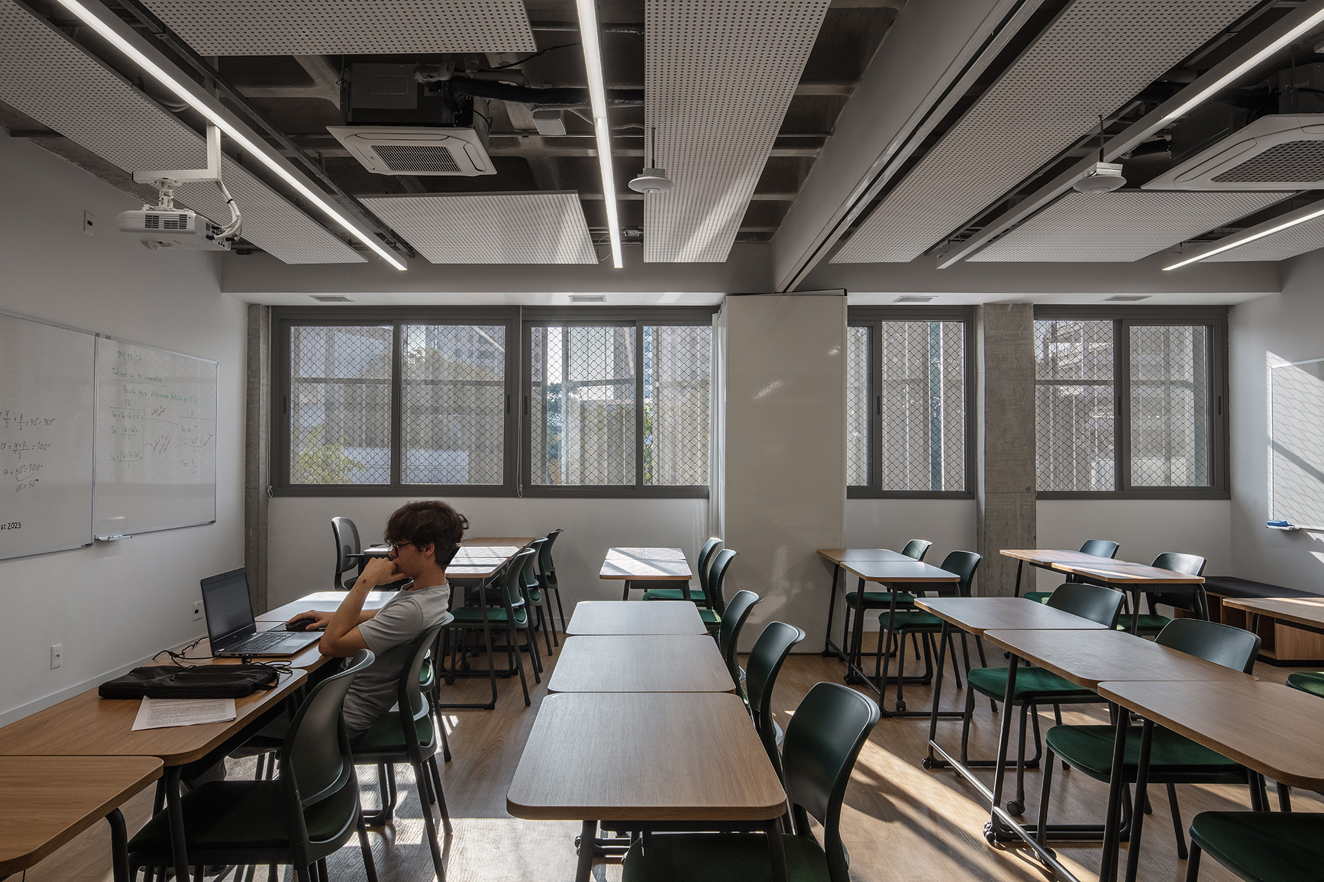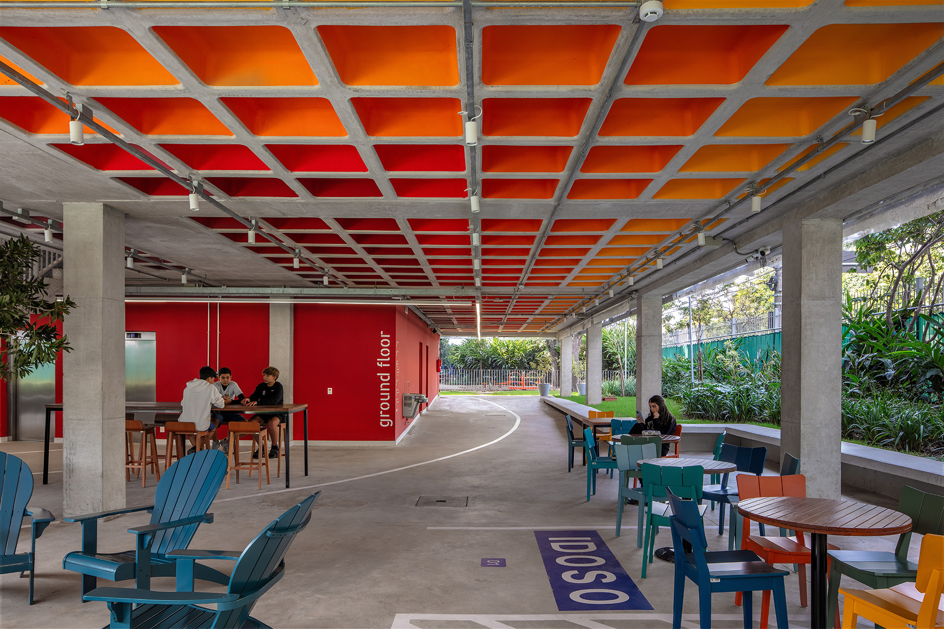 O Campus é concebido como um espaço inclusivo e integrador, onde uma rede contínua de espaços livres no nível térreo encoraja o convívio e a aproximação entre estudantes de diversos ciclos, professores e funcionários. O novo edifício, localizado na entrada junto à Rua Mofarrej, integra-se a este sistema conformando uma ampla área coberta sobre pilotis. Este espaço funciona, simultaneamente, como um desdobramento do passeio coberto coletivo do Campus e como um generoso hall de entrada para o edifício do ensino médio.