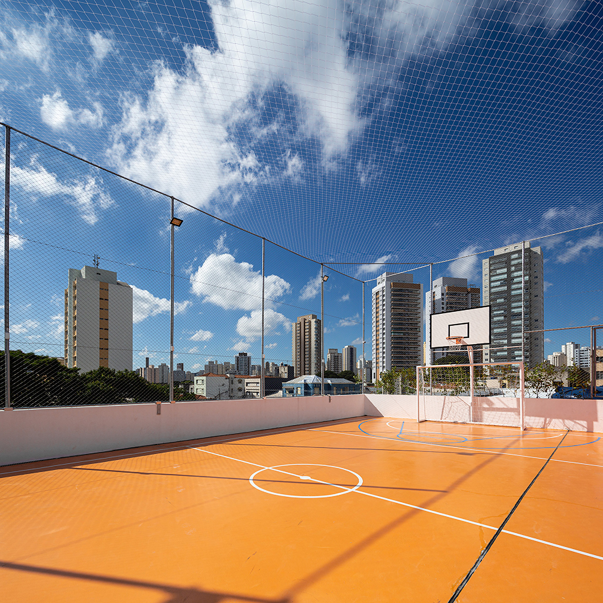 A partir do nível térreo, onde se localiza a chegada pela Rua Clélia e as salas da administração, o programa se desenvolve por dois percursos: um mais direto e generoso sentido subsolo e outro mais eficiente e funcional para os andares superiores. No subsolo, em contato direto com a área externa ajardinada, posicionamos a área do refeitório e os programas pedagógicos que formam a grade complementar da escola, constituindo grande espaço voltado para o encontro e o aprendizado coletivo. Para integrar este pavimento com o nível térreo pensamos numa grande arquibancada que, além de articular de forma franca estes dois espaços, serve também para apresentações e atividades culturais voltadas para todo o corpo da escola e convidados externos. Nos andares superiores, articulados por um novo sistema de escadas e passarelas, estão posicionadas as salas de aula junto a pequenos espaços coletivos para atividades grupais. Finalmente, aproveitamos a ampla cobertura do edifício para posicionar os programas esportivos e de recreação.
