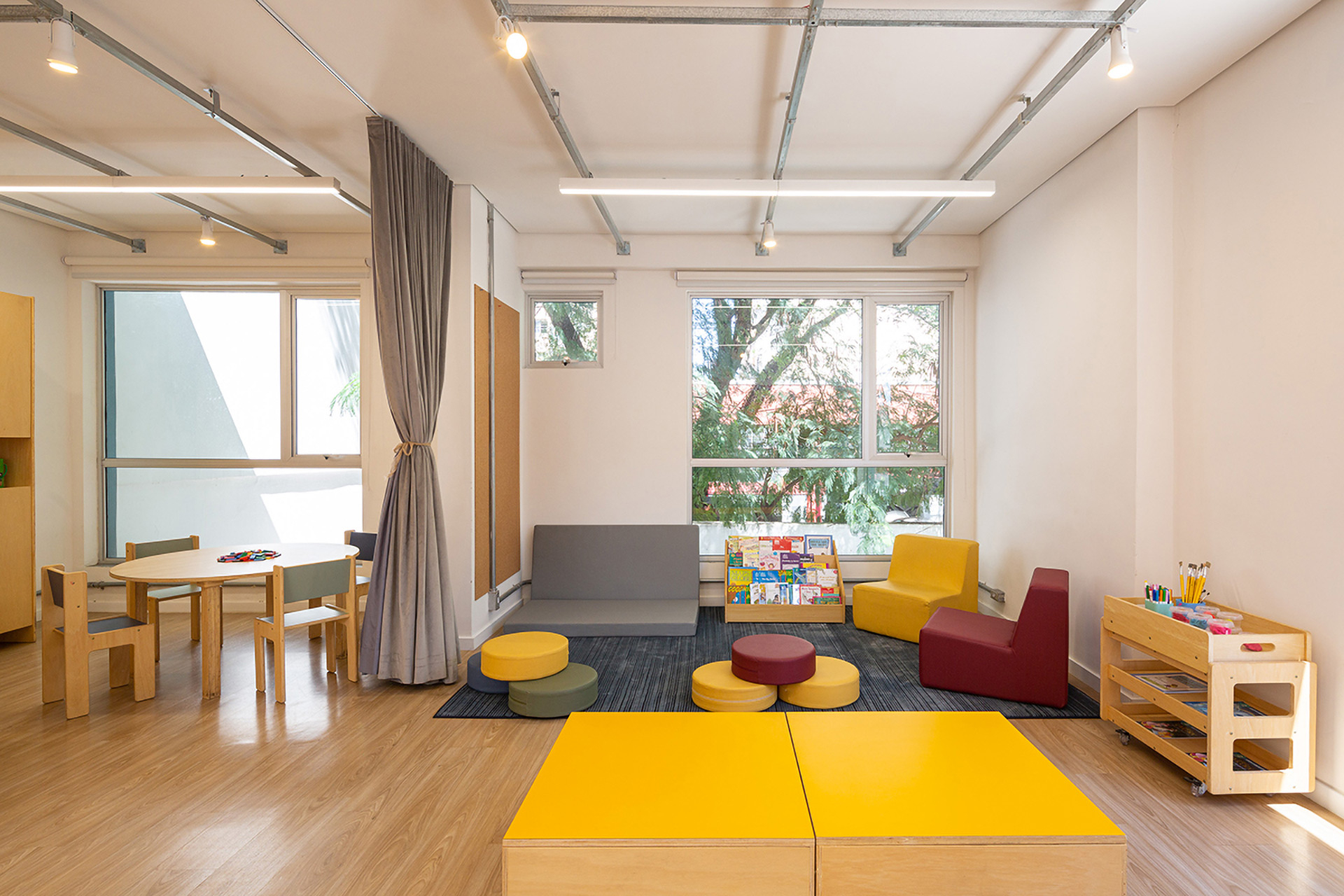 Este projeto trata da reforma em uma antiga concessionária de carros, localizada no Bairro da Lapa, São Paulo,para abrigar as necessidades de uma escola com uma proposta pedagógica inovadora pautada no ensino por meio de projetos. As etapas de projeto envolveram desde a escolha do imóvel que seria reformado até a ambientação das salas e escolha e desenho de mobiliário.