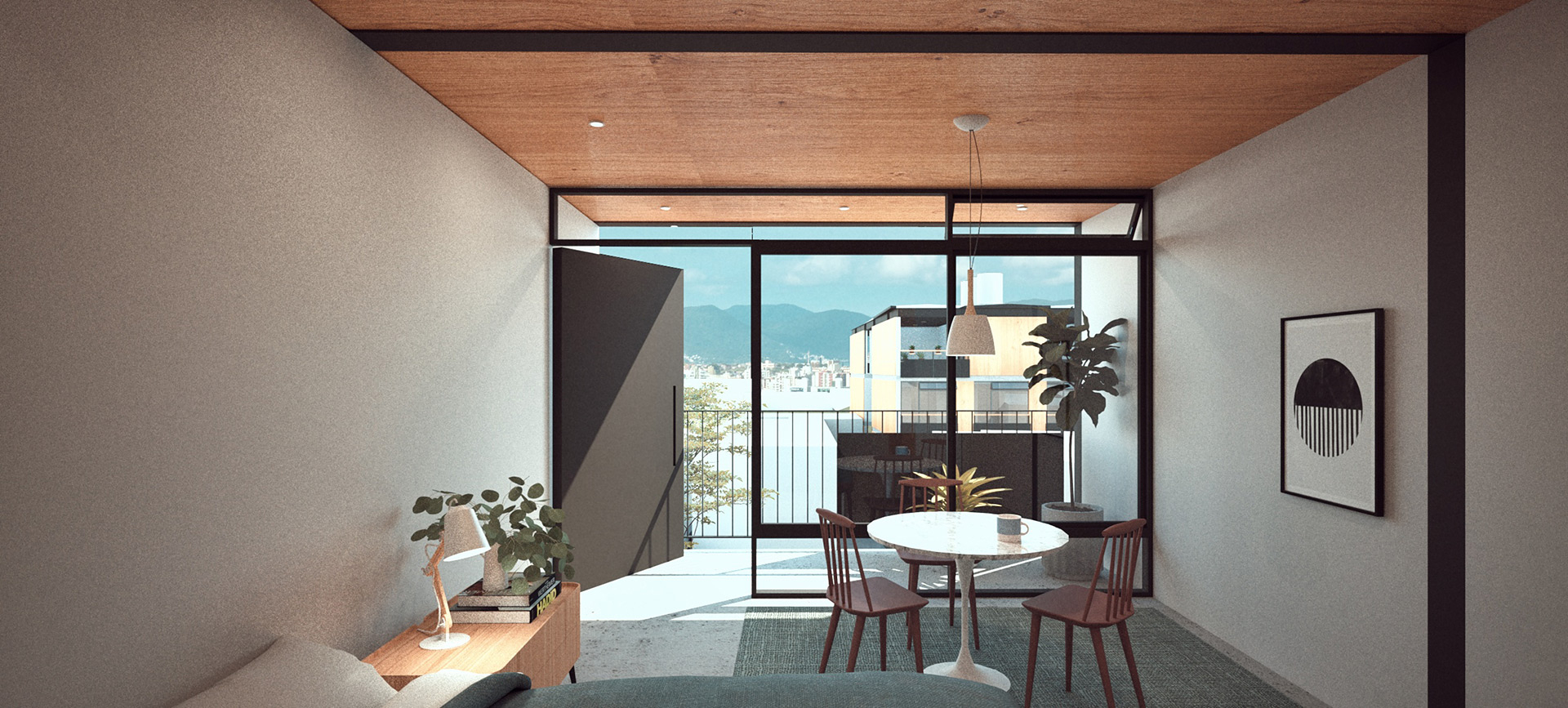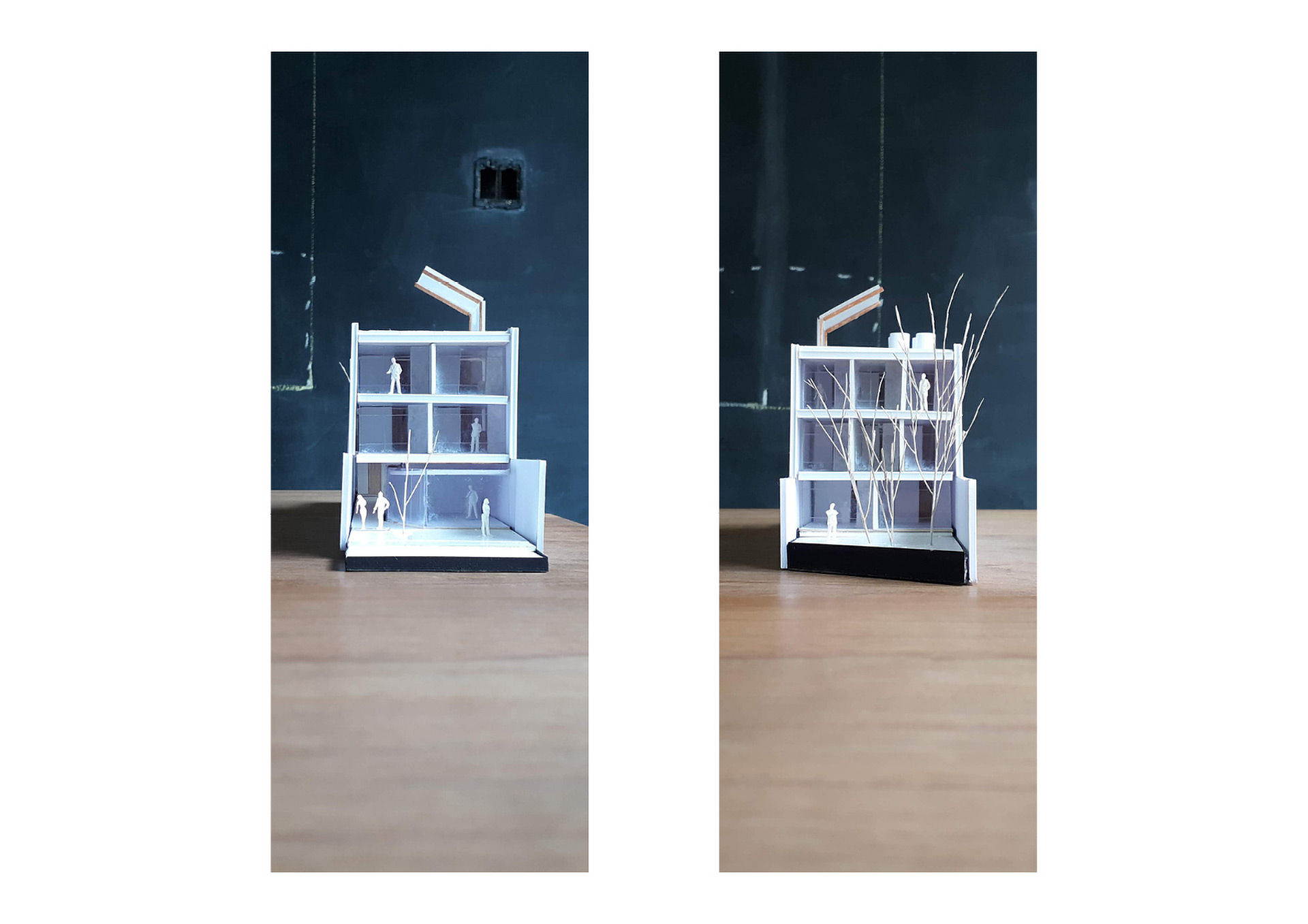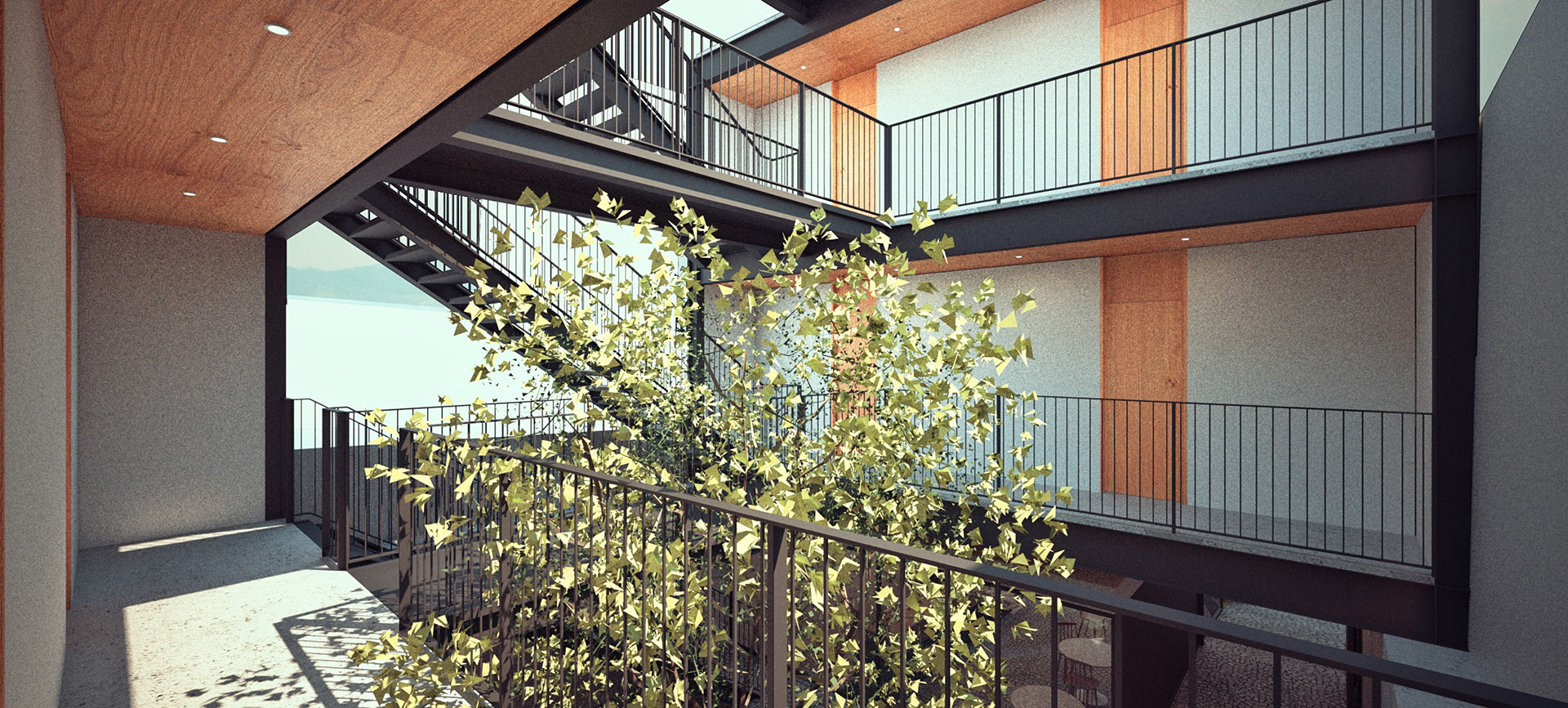 Com doze estúdios compactos, sendo 6 de 29,70m² e 6 menores, de 20,30m², o projeto possui um pátio central que ilumina, garante a ventilação cruzada das unidades e organiza a circulação vertical para os dois blocos de estúdios. A estrutura metálica segue uma modulação racional e é construída com apenas um tipo de pilar e um tipo de viga. Tal pragmatismo no viés construtivo deste projeto visa uma construção econômica, limpa e rápida.